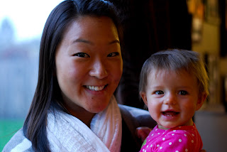 We started out our Christmas festivities at my Grandma's house in Dallas on Christmas Eve. Cayden had fun attacking Grandma's tree and chewing on Grandpa's 70-year-old toys. After the Christmas Eve service at Salem Heights, we went over to the Adamsons for dessert with the Hunter side of the fam. All of my cousins on my dad's side were there, which is pretty amazing because three of us our married with kids, and it's harder and harder to get us all together! Below is a picture of me and Cayden with my two cousins and their babies. The babies were all born within 6 months of each other! Sleeping was not one of Cayden's fortes on Christmas Eve. We spent the night at Bryan's parents' house, and she woke up 3 times that night, which meant a slightly crabby Cayden the next day. She woke up to open presents, then had to go back to take a nap before she finished opening presents! Cayden getting some help from Daddy in opening one of her many presents...